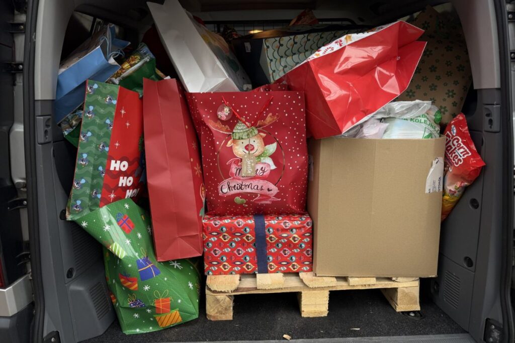 W zaledwie dwa dni znalazło się tyle chętnych do przygotowania prezentów, że mogliśmy ogłosić zakończenie akcji poszukiwania darczyńców. Paczki nie tylko zawierały wszystkie rzeczy, o które dzieci poprosiły w listach do św. Mikołaja, ale też zostały pięknie przygotowane i zapakowane. I było ich tyle, że ledwo zmieściły się w naszym busie 😉